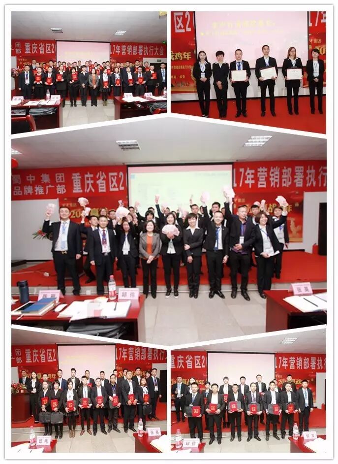 2月8日—2月10日,蜀中集团品牌推广部重庆省区2016年总结表彰暨2017年营销战略执行大会在公司总部顺利召开。集团副总经理兼营销中心总监张英女士、集团品牌推广部内务总监冯薇女士、品牌推广部华中大区总监陈雁先生等相关领导,以及重庆的省区、片区、县级经理与一线推广专员参加了此次会议。