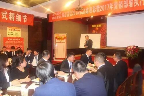 集团品牌推广部华北大区总监安新平先生首先宣布了集团对豫西新片区经理的任命,在祝贺各位新片区经理的同时要求大家要尽快适应本职工作,为豫西省区的腾飞注入新的动力!安总将华北大区2016年的业绩进行了全方位的回顾,并指明了豫西省区2017年的工作重心和营销思路,要求全体豫西将士要严抓落实,学以致用,确保2017年的任务指标圆满完成。