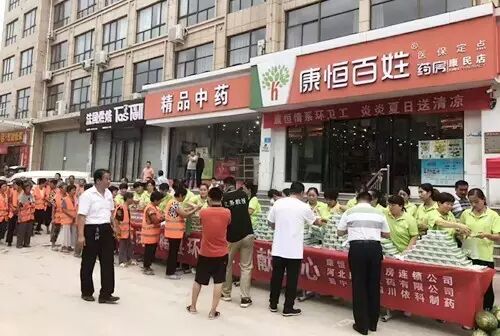 近日,在河北省邯郸市馆陶县,蜀中集团·人生就是博制药携手康恒百姓药房连锁公司与河北康恒医药有限公司,共同开展了“向馆陶县环卫工人献爱心”活动。活动仪式上,企业负责人向奋战在环卫一线的城市美容师表示衷心的感谢,并送上防暑药品藿香正气水,从而缓解环卫工人们在盛夏时节遭受的高温压力,带去丝丝凉意。